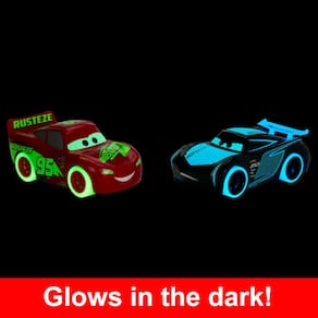 - Estes veículos Carros Track Talkers da Disney e da Pixar dão vida aos personagens com efeitos sonoros e efeitos que brilham no escuro!