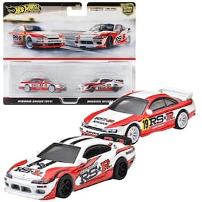 Este Hot Wheels Premium 2-Pack apresenta dois lendários carros esportivos da Nissan, o 240SX (S14) e o Silvia (S15), meticulosamente fabricados na escala 1:64 para colecionadores e jovens entusiastas. Cada mini carro exibe alta atenção aos detalhes, desde os esquemas de pintura autênticos até os pneus de borracha Real Riders™ que aumentam o realismo e o desempenho em qualquer superfície de brincadeira.