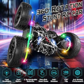- 🔥 Carro RC giratório de 360° e dupla face: Com base no design atualizado do Terucle RC Stunt Car, você pode fazer derrapagens completas de 360 graus, proporcionando a emoção de derrapar em cada sessão de jogo. Este brinquedo de veículo RC robusto e durável foi construído para corridas de dupla face, permitindo que ele vire e corra em ambos os lados para ultrapassar obstáculos facilmente.