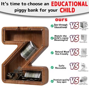 Cofrinho de madeira com 26 letras para meninos e meninas - 🎁 ?Extra grande, mais capacidade? Ouvimos as vozes de muitos clientes, dissemos que nosso banco de cartas não é grande o suficiente, então fizemos um banco extra maior para economizar mais dinheiro, este tamanho de banco de cartas é de 30,5 cm, o suficiente para economizar as moedas e o dinheiro das crianças - 🎁 ?Brinquedos educativos montesorianos? Cofrinho transparente na frente do uso de acrílico transparente, pode atrair crianças para observar o crescimento da economia, para que elas gostem de salvar, para desenvolver o hábito de aprender a economizar desde cedo. Escolha um banco com as iniciais correspondentes aos nomes das crianças, um presente exclusivo para meninos e meninas de qualquer idade. - 🎁 ?Artesanato de alta qualidade?Nosso banco é feito de nogueira ou carvalho de alta qualidade, mais resistente e durável, o banco foi polido várias vezes, tratamento de óleo natural não tóxico, tornando a aparência mais suave e confortável. - 🎁?Fácil de abrir?Quando você quiser abri-lo, você só precisa desparafusar alguns parafusos, remover o vidro para tirar as moedas e depois colocá-lo de volta para continuar a usar, porque é feito de madeira de alta qualidade, pode ser utilizado por um longo tempo, seguro e ecológico - 🎁?SERVIÇO LADENK?Se você tiver alguma dúvida sobre o banco ou precisar que personalizemos seu banco, , fornecemos serviço completo de gravação a laser, podemos gravar o conteúdo que você deseja na frente e atrás, isso beneficiará seu filho por toda a vida.