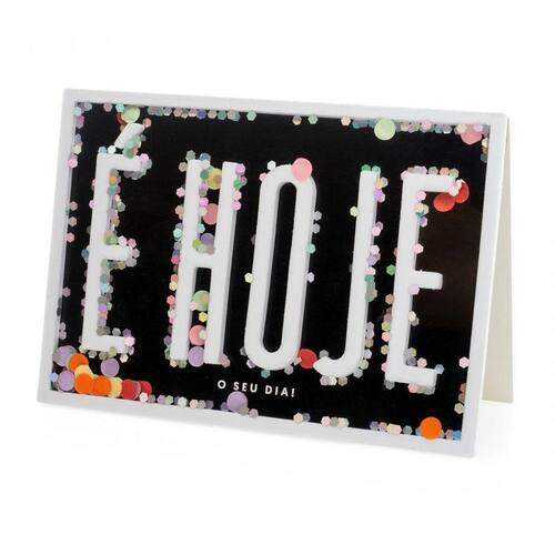 Cartão Aniversário é Hoje É hoje (que seu migs que tá de parabéns ganha um presentão com cartão, hein!). Pra você desejar tudo e mais um pouco, essa belezinha possui na capa glitter, confete e tudo que uma festa boa pede. Já na parte interna, espaço para você escrever tudo o que deseja pra essa nova fase e pra finalizar, uma ilustração de fatia de bolo com velinha escrito: agora é só soprar pra realizar! É hoje: o seu dia! Referência - PI4080Y Função - CARTOES Largura (cm) - 17 CM Altura (cm) - 12 CM Profundidade - 1 CM Exclusivo - IMAGINARIUM Ean: 7898458194968