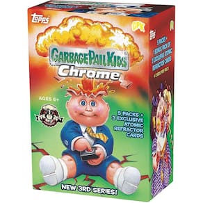 Cada caixa contém cinco (5) pacotes 2020 Garbage Pail Kids Chrome mais um (1) pacote bônus de violoncelo com três (3) bases Atomic Refractor Parallels. Cada pacote contém quatro (4) cartas básicas. O Garbage Pail Kids Chrome está de volta! O conjunto de cartas colecionáveis Garbage Pail Kids Chrome faz seu retorno triunfal, com personagens autênticos da Série 3. Colecione todos os seus personagens favoritos e alguns novos! Paralelos exclusivos! Autógrafos de artistas! Variações raras do C-Name!