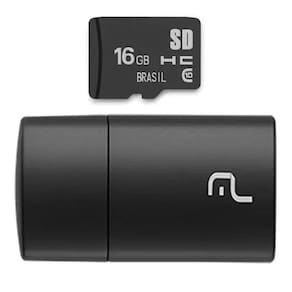 DescriçãoLeitor de Cartão Compatibilidade USB 2.0 e micro USBTaxa de transferência até 480 Mb/sDimensões (mm) 47 x 20 x 11Peso (g) 3Cartão de Memória Durabilidade à prova de água, choque, vibração e temperaturas extremasTaxas de transmissão dados 4MB/s gravação até 20MB/s leituraVoltagem de operação 2,7 V~3,6 VPeso (g) 2,5Dimensões (mm) 15,0 x 11,0 x 1,0Conteúdo da embalagem 1 Cartão de Memória Micro SD 1 Leitor de cartão