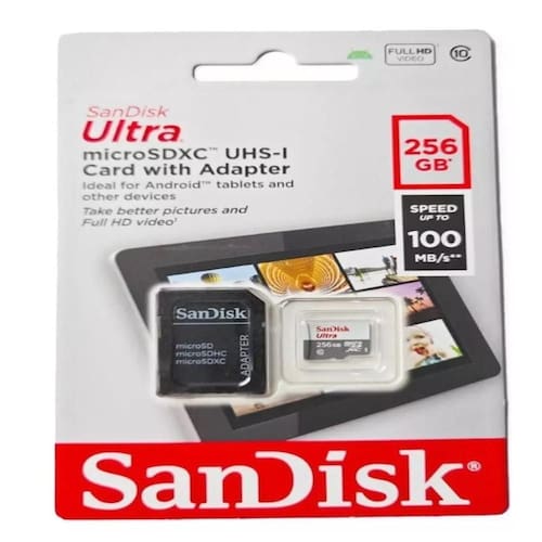 O cartão SanDisk Ultra microSD UHS-I proporciona a liberdade para capturar, salvar e compartilhar mais do que nunca. Com capacidade de 256GB, nosso cartão SanDisk Ultra microSD tem espaço para ainda mais horas de vídeo Full HD e oferece velocidade de transferência de até 100 MB/s para ajudar a mover o conteúdo rapidamente.