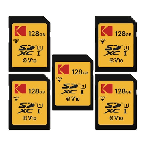 - 5 cartões de memória Full HD Kodak SD Premium Performance Class 10 UHS-I U1 V10 com velocidade de até 25 MB/s - O pacote inclui: 5 x cartão de memória Full HD