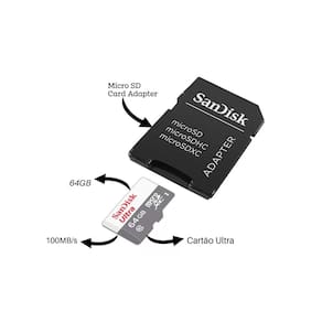 Este cartão vem com um adaptador SD, facilitando o uso em uma variedade de dispositivos.