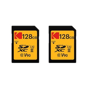pacote inclui: 2 x Kodak Cartão de memória GB UHS-II U3 V90 Ultra Pro SDXC - Velocidade de gravação: o cartão de memória tem velocidades de gravação de até 230 mb/s e é ideal para alta velocidade contínua Gravações