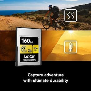 Cartão de memória lexar cfexpress profissional 160gb type a gold 900mb/s Capacidade de 160 gb Velocidade máxima de leitura: 900 mb/s Velocidade máxima de gravação: 800 mb/s Velocidade mínima de gravação: 700 mb/s Compatível com vpg-400 a 400 mb/s Grava vídeo 8k, 4k e hfr a 120 fps Grave fotos brutas e explosões de imagens Resistente a choques e vibrações Prova de temperatura