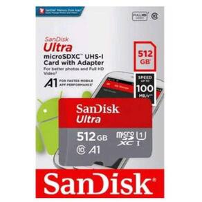 Cartão de memória SanDisk 512GB Ultra microSDXC UHS-I com adaptador - 120MB/s, C10, U1, Full HD, A1, cartão micro SD Capture a vida no seu máximo com a inovativa capacidade deste cartão microSD de 256GB; uma capacidade de 256GB significa que você não terá que se preocupar com o que precisa apagar. É capacidade suficiente para armazenar mais de 24 horas de Vídeo em alta definição; e você pode transferir até 1200 fotografias por minuto quando estiver pronto para arquivar; construído para funcionar em condições extremas, os cartões SanDisk Ultra micro SDXC são à prova d'água, temperatura, choques e raios-x. O cartão microSD de 256GB tem classificação 10 quanto à gravação de vídeo em Full HD2 e vem com um adaptador SD.