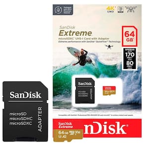 Cartão Micro Sd Sandisk Extreme 64Gb Com Adaptador Sd 170Mbs