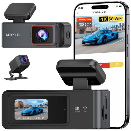 IMPORTANTE: Se for um produto elétrico, ele pode ser compatível com uma tomada de 110 volts. Se utilizado fora dos Estados Unidos, pode ser necessário um conversor de voltagem para garantir a operação adequada. Verifique se o produto que você está comprando é elétrico antes de considerar essas informações. Câmera de painel Kingslim 4K frontal e traseira com cartão SD de 64 GB, câmera de painel WiFi 5G para carros, controle de aplicativo sem fio Dashcam de 1,5", suporte para monitor de estacionamento de 2 tipos G-Sensor/Time Lapse