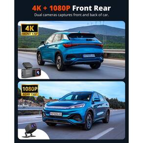 - CÂMERA FRONTAL E TRASEIRA 4K+1080P DASHCAM: câmera de painel duplo 4K com cartão SD de 64 GB de alta velocidade. A câmera frontal do painel grava vídeos de 4K a 170°, a câmera traseira à prova d'água grava vídeos 1080P a 150° simultaneamente. Mini câmera de painel oculta, tela de 1,5" para visualização de vídeo