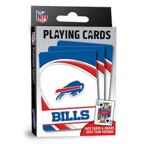 MasterPieces - Baralho de cartas da NFL, baralho de futebol Buffalo Bills oficialmente licenciado, jogos familiares para adultos e crianças, índice padrão - Licenciado oficialmente: nossas cartas de baralho NFL são o baralho perfeito para festas na porta traseira, noite de jogos em família, pôquer e muito mais; o baralho colecionável inclui 52 cartas de baralho e dois coringas - Designs de futebol personalizados: a parte de trás de cada carta apresenta o logotipo do seu time favorito; cartas de rosto e coringas são ilustrados exclusivamente para mostrar seu espírito de equipe - Qualidade premium: o baralho completo é feito de cartolina de alta qualidade para durabilidade e sensação - TAMANHO DO ÍNDICE PADRÃO: Dimensões convenientes de 6,3 cm x 9 cm garantem compatibilidade com acessórios padrão de cartas de baralho. - Favoritos dos fãs: as cartas de baralho da NFL são o melhor presente para fãs de futebol de todas as idades; aniversários, enfeites de praia, feriados e festas de jogos de boliche