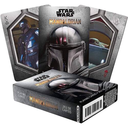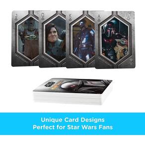 Have a great time playing your favorite card game with this deck of playing cards featuring characters from hit Disney+ Star Wars series, The Mandalorian! Playing cards are great for all types of card games, including Poker, Bridge, Go Fish, Hearts, Blackjack, and more! Unique card designs. Perfect for Star Wars fans. Gift ready. Aquarius. 100% officially licensed. Follow the trevails of a lone gunfighter in the outer reaches of the galaxy with this deck of Star Wars: The Mandalorian playing cards featuring images from the live-action series.