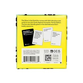 Cards Against Humanity Family Edition: Glow in The Dark Box • Expansão de 300 cartas - Nossa primeira expansão para Cards Against Humanity: Family Edition, com 300 novas cartas ridículas para misturar em seu baralho. - A caixa literalmente brilha no escuro, facilitando a localização em uma caverna. - Também inclui adesivos bônus que brilham no escuro! - Desculpe, os cartões não brilham, isso seria muito brilhante. - Adequado para a maioria dos humanos com 8 anos ou mais. Observe que os cartões são maiores do que os cartões CAH normais. Se isso o irritar, considere se preocupar com algo mais importante, como a mudança climática. .