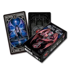 Tarô gótico Heraclio Fournier Anne Stokes, preto - Imagens exclusivas desenhadas à mão em todos os 78 cartões. - Impresso em cartolina Fournier premium. - Baralho padrão de tarô (60 x 110 mm) - Textos em 4 idiomas (inglês, espanhol, francês, alemão) - Inclui folheto de instruções em 5 idiomas (inglês, espanhol, francês, alemão e português)