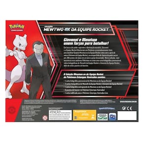 Cartas Pokémon Coleção Mewtwo ex e Giovanni Líde da Equipe Rocket - Copag Prepare-se para mergulhar no lado sombrio do universo Pokémon com a Box Pokémon Mewtwo ex da Equipe Rocket Esta edição especial traz o lendário Mewtwo ex em versão holográfica promocional, além de cartas exclusivas do Meowth e do infame Giovanni, líder da Equipe Rocket. Ideal para fãs da franquia, colecionadores e jogadores que buscam cartas poderosas e diferenciadas. A box inclui ainda uma carta extragrande de Mewtwo ex, 6 pacotes de booster para expandir sua coleção com novas estratégias, e um código para o Pokémon TCG Live, para você duelar online com jogadores do mundo todo. Perfeita para quem é apaixonado pela Equipe Rocket ou quer adicionar um toque de vilania à sua coleção, essa box é um item indispensável para todas as idades a partir dos 7 anos. Principais Características: - Idade Recomendada: A Partir de 4 Anos - Tipo de Jogo: Estratégia, Para Colecionar, Raciocínio - Quantidade de Pessoas 2 ou mais - Possui 1 carta holográfica promocional - 2 carta holográfica - 1 carta holográfica extragrande - 6 pacotes de booster do Pokémon Estampas Ilustradas - 1 carta codificada para o Pokémon Estampas Ilustradas Live Especificações Técnicas: - Conteúdo da Embalagem: Contém 39 unidades de cartas no formato 63mm x 88mm + 1 unidade de carta no formato 133mm x 187mm. - Material/ Composição: Cartão - : 30 Dias Contra Defeito de Fabricação pelo Fabricante - Certificação: INMETRO 008 140/2021 - Código do Fabricante: 10167 - EAN:7896192355782 - Marca: Copag Imagens meramente ilustrativas, as cores e estampas podem variar de acordo com o lote do fabricante Marca: Não Informado Ean: 7896192355782
