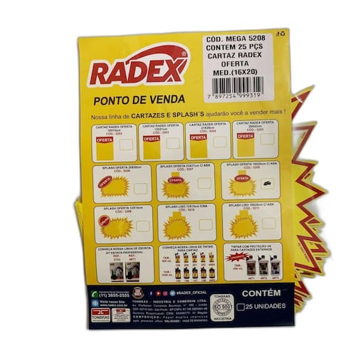 Cartaz em papel duplex splash, gramatura 250 grs / metro quadrado, utilizar produtos Radex como, pinceis permanente, kit de escrita, tintas para cartazes e tintas para cartazes UV para exposição externa. Pacote com 25