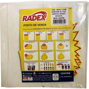 Cartaz em papel duplex splash, gramatura 250 grs / metro quadrado, utilizar produtos Radex como, pinceis permanente, kit de escrita, tintas para cartazes e tintas para cartazes UV para exposição externa.--------------------- BIG BOOST ------------------------Cartaz Para Oferta - Promoções 20 X 30 Cm- 25 UnidadesCartaz Para Oferta - Promoções 20 X 30 Cm- 25 Unidades - Radex Cartaz Para Marcacao Splash Oferta Amarelo 20X30Cm. Radex Pct.C/25 Informações complementares Marca Radex Quantidade 25 Unidades