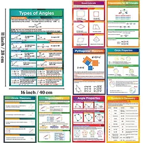 Tamanho grande: cada pôster mede 16* 11 polegadas/41* 28 cm, é grande o suficiente para fazer com que os alunos se concentrem no conteúdo. Esses pôsteres educacionais em cores vivas são ótimos para educação em casa, ensino médio e ensino médio. Presente perfeito: dê o presente do conhecimento. Eles são um presente perfeito para apoiar crianças, famílias e professores em suas jornadas de aprendizado. Design de canto redondo: projetamos o canto redondo para evitar ferir crianças pelo canto afiado. Cartazes educacionais totalmente laminados: cada pôster mede 16* 11 polegadas/41* 28 cm. Eles são feitos de 250 cartolinas, com dupla face coberta com filme PET de alta qualidade para maior durabilidade. Especificações: Tamanho: 16* 11 polegadas/41* 28 cm Quantidade: 9 peças Conteúdo: tipos de ângulos, propriedades angulares, teorema de Pitágoras, trigonometria, trigonometria para todos os triângulos, teoremas de círculos, propriedades de círculos, quadriláteros, símbolos em geometria. O pacote inclui: 9 x pôsteres de matemática:1 x tipos de ângulos 1 x propriedades dos ângulos 1 x teorema de Pitágoras 1 x trigonometria 1 x trigonometria para todos os triângulos 1 x teoremas do círculo 1 x propriedades do círculo 1 x quadriláteros 1 x símbolos na geometria Tamanho grande: cada pôster mede 16* 11 polegadas/41* 28 cm, é grande o suficiente para que os alunos se concentrem Sobre o conteúdo, esses pôsteres educacionais em cores vivas são ótimos para o ensino doméstico, o ensino médio e o ensino fundamental. Presente perfeito: dê o presente do conhecimento. Eles são um presente perfeito para apoiar crianças, famílias e professores em suas jornadas de aprendizado. Design de canto redondo: projetamos o canto redondo para evitar ferir crianças pelo canto afiado. Cartazes educacionais totalmente laminados: cada pôster mede 16* 11 polegadas/41* 28 cm. Eles são feitos de 250 cartolinas, com dupla face coberta com filme PET de alta qualidade para maior durabilidade. Especificações: Tamanho: 16* 11 polegadas/41* 28 cm Quantidade: 9 peças Conteúdo: Tipos de ângulo