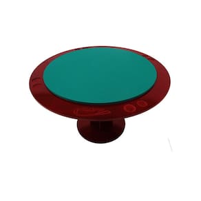 Mesa redonda para jogar carteado, confeccionada em MDF de 18 mm com acabamento envernizado em PU e tampo central revestido com tecido em poliéster na cor verde, possui porta-copos e porta-cinzeiro em baixo relevo e pé em MDF.