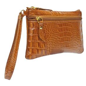 Carteira Bolsa Clutch Feminina Porta Celular em Couro - Marrom - P