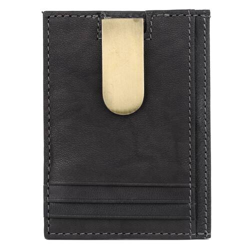 Couro crocante genuíno curtido a óleo, detalhes em duas fileiras. A carteira de bolso frontal Hunt possui um clipe dobrável para dinheiro, 3 compartimentos para cartões de crédito, 2 bolsos utilitários e janela para identificação.