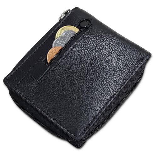 Características: - feita de couro de alta qualidade - modelagem horizontal tradicional - abertura com zíper - costuras reforçadas, fios de nylon específicos para costuras ''pesadas'' - comporta Identidade RG , Carteira de Motorista CNH , CPF e diversos outros documentos de tamanhos semelhantes - possui bolso externo, o que possibilita agilizar bastante o uso diário - resiste muito bem a água e as intempéries ambientes - possui estrutura antifurto, esta carteira masculina possui bloqueio contra sistemas de aproximação de cartões bloqueio RFID . Deste modo, além de ser uma carteira completa que abrange quase todas as necessidades do usuário, é um produto que trará mais segurança durante o seu uso