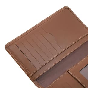 Parte interna: Dezessete slots para cartões que comportam até 34 unidades (considerando utilizar 2 cartões por slot). Cinco compartimentos livres para colocar cédulas e documentos, por exemplo. Compartimento revestido em PVC exclusivo para CNH.