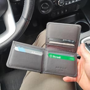 Carteira de Couro Masculina Marrom em L Porta Cartão Veneza Briolly Visor CNH.