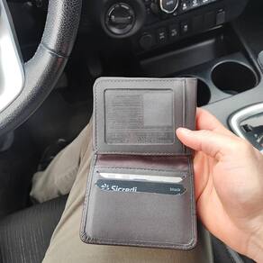 Garantia: 90 dias / Peso: 0,056kg / Cor predominante: café / Referência: 7895944444187 Dimensões fechada: 11cm (C) x 1,5cm (L) x 8,5cm (A). Dimensões aberta: 21cm (C) x 1,5cm (L) x 17cm (A). Material: couro e poliéster. Divisórias: 1 visor para CNH; 6 porta cartão; 1 bolso interno; 1 porta dinheiro.