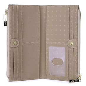 Carteira de couro Dopp Cosmopolitan com bloqueio de RFID Couro granulado com hardware dourado brilhante e fechos com zíper com logotipo Dopp. A carteira Dopp Cosmopolitan possui um grande bolso deslizante externo, dois zíperes superiores que se abrem para grandes bolsos seguros e o fecho de pressão abre para 9 compartimentos para cartões de crédito, 2 bolsos grandes e uma janela de identificação. Tamanho: 8" x 4 1/2" x 3/4" Possui 9 compartimentos para cartões 1
