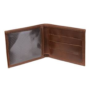 Carteira masculina DH Couros fabricada em couro na cor Caramelo, possui total de 4 compartimentos, sendo 2 para cartões, 1 para dinheiro 1 compartimento transparente para documento.