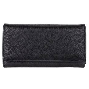 Couro vegano Pebble Grain com forro de bloqueio de RFID O organizador de arquivos Pebble Bianca possui um compartimento externo com zíper reforçado e fecho duplo. O interior tem 12 compartimentos para cartões de crédito, 3 bolsos deslizantes, 2 janelas de identificação, uma seção de acordeão com 3 compartimentos para “dinheiro”, “cupons” e “recibos” e um compartimento com zíper.
