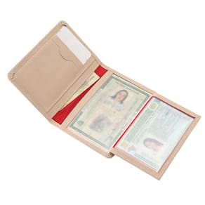 Dois compartimentos por baixo dos cartões para notas dobradas, RG e CNH.