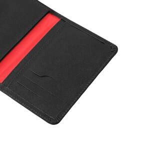 Dois compartimentos por baixo dos cartões para notas dobradas, RG e CNH.