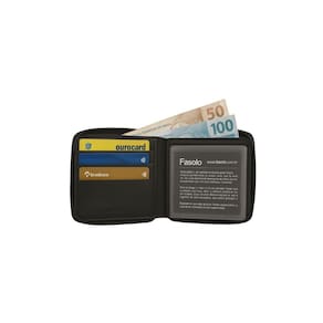 Carteira Fasolo Masculina Couro - Confeccionada em Couro; - Possui seis divisões para cartão; - Possui seis plásticos transparentes para documentos; - Possui uma repartições para notas e divisões extras; - Possui Bolso com zíper externo para moedas. ; - Dimensões: 9 x 12 x 2 cm alt x larg x prof ; Imagens meramente ilustrativas Marca: Não Informado
