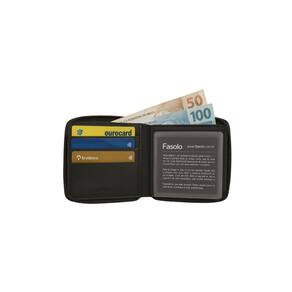 Carteira Fasolo Masculina Couro - Confeccionada em Couro; - Possui seis divisões para cartão; - Possui seis plásticos transparentes para documentos; - Possui uma repartições para notas e divisões extras; - Possui Bolso com zíper externo para moedas. ; - Dimensões: 9 x 12 x 2 cm alt x larg x prof ; Imagens meramente ilustrativas Marca: Não Informado