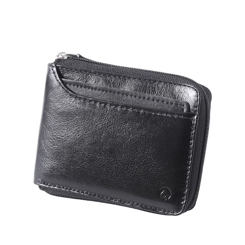 A parte traseira conta com porta moedas com fechamento em zíper. A parte frontal conta com bolso livre para encaixe de porta CNH removível com slot para cartão que acompanha a carteira.