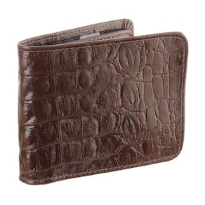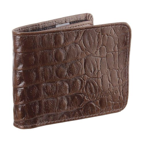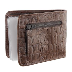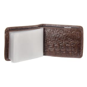 Carteira masculina DH Couros fabricada em couro bovino trabalhado estilo jacaré na cor Café, possui total de 15 compartimentos, sendo 6 para cartões, 2 para dinheiro, 6 plásticos para documentos e porta moedas com zíper na detrás.