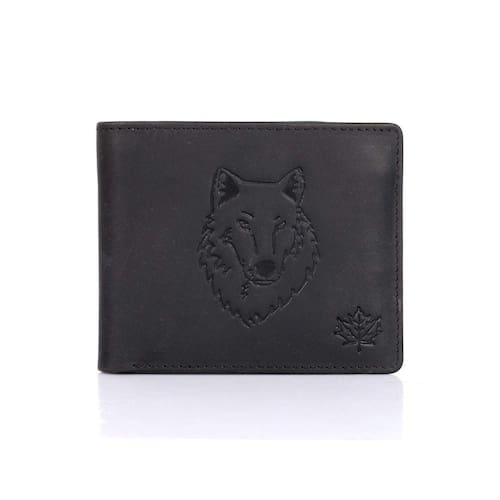 Carteira masculina Karla Hanson de couro com bloqueio de RFID Black Wolf - Preto