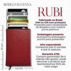 Carteira Porta Cartao Antifurto RFID ATNI Exclusive Ravenna COR: Rubi Carteira Ravenna Pedras Preciosas Conheça a nova linha de carteiras Exclusive Ravenna nas versões Rubi e Safira. Inspiradas nas pedras preciosas, essas carteiras oferecem um diferencial exclusivo e marcante Projetadas no Brasil, nossas carteiras são a solução perfeita para suas necessidades diárias. ---- Benefícios Exclusivos que Fazem a Diferença ---- - Proteção com Tecnologia RFID : Garanta a segurança de seus cartões contra clonagens e cobranças indevidas por aproximação. Ideal para quem valoriza tranquilidade e proteção no dia a dia. - Fecho com Ímã : Mantenha sua carteira sempre fechada e segura. - Sistema Pop-Up Prático : Um botão e os cartões são organizados ejetados, facilitando uma escolha rápida e eficiente. - Porta-habilitação Vazado : Armazene sua CNH ou CIN com um protetor rígido, garantindo organização e fácil acesso. - Porta-cédula Reforçada : Espaço extra para suas notas, com resistência para evitar danos. - Cinta Elástica Antiqueda : Mais segurança para evitar que cartões ou cédulas caiam acidentalmente. - Porta-Cartões Inteligentes : Acomoda até 6 cartões na case com tecnologia RFID e 4 adicionais fora dela, garantindo capacidade e segurança. - Ravenna Rubi A Ravenna Rubi é a personificação do luxo e da exclusividade. Inspirada na majestade dos rubis, essa carteira exibe uma intensidade vibrante e um brilho cativante que transcende a moda. Feita com a mais alta qualidade de couro texturizado, cada detalhe da Ravenna Rubi foi cuidadosamente elaborado para transmitir poder e elegância. Ideal para aqueles que não se contentam com o comum, esta carteira é um verdadeiro símbolo de status e sofisticação, capaz de elevar qualquer ocasião a um nível superior. - Ravenna Safira A Ravenna Safira é a representação máxima da elegância e da profundidade. Com sua cor azul escuro inspirada nas safiras mais preciosas, esta carteira evoca um senso de mistério e refinamento incomparáveis. Produzida com couro texturizado de altíssima qualidade, a Ravenna Safira combina durabilidade e estilo em uma peça única. Perfeita para os que buscam um acessório que exale classe e distinção, esta carteira é um testemunho do bom gosto e da exclusividade, ideal para aqueles que desejam se destacar de forma sutil, mas marcante. Marca: ATNI Modelo: Ravenna Pedras Preciosas Fecho: Imã Origem: Brasil Estampa: Texturizada Capacidade cartões: 10 cartões Capacidade cédulas: 10 cédulas Capacidade moedas: Não indicado : 30 dias Medidas: Alt: 10cm x Larg: 6,5cm x Prof: 1,5cm - Compra segura e com - Somos vendedores indicado - Enviamos o produto em até 10 horas uteis - Comporta documento CIN com proteção - Não comporta RG antigo Grande Não perca a oportunidade de ter uma carteira que combina estilo, funcionalidade e proteção. Garanta já a sua e sinta a diferença Marca: Não Informado