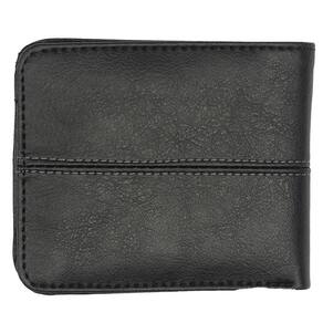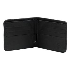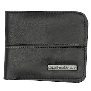 Carteira QuikSilver feita em tecido manta de PVC e Poliéster, cantos arredondados, aplicação de placa no canto do painel frontal, costuras contrastantes no recorte centralizado por toda a extensão, abertura para cartões em ambos os lados, aplicação de alta frequência da marca no interno e aplicação de etiqueta bandeira no interno da carteira.