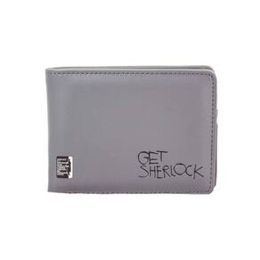 - A elegante carteira cinza diz “Get Sherlocked”!
