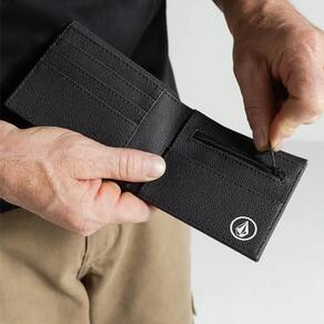 Carteira Volcom com assinatura Volcom frontal em baixo relevo, silk Circle Stone interno, zíper interno, divisão interna para cartões, dinheiro, documento e moeda.