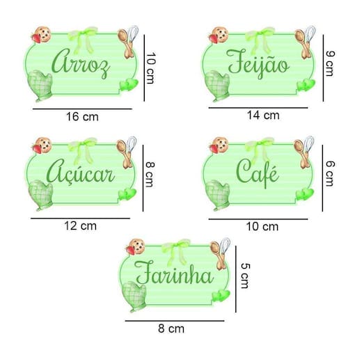 Cartela c/05 unid de adesivos para potes mod verde Atenção as medidas Os adesivos decorativos são produzidos com material de alta qualidade. As imagens anunciadas são ilustrativas