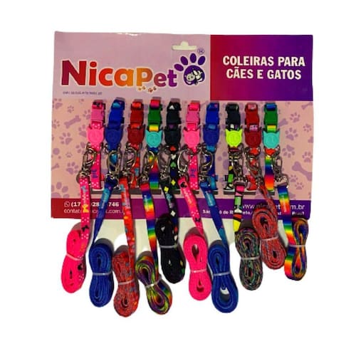 - 10 unidades de coleiras; - coleiras de seda com borrachinha de gatinho; - com guia para passear com seu gato; - para gatos; - com regulagem de tamanho; Marca: Nicapet