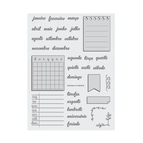 O Carimbo Calendário é uma solução prática e eficaz para adicionar ilustrações e organizar datas em suas anotações. Este produto inclui uma régua transparente de 150x200mm, com textos dos meses do ano, dias da semana, tarefas, urgente, lembrete, aniversário, feriado, entre outros temas relacionados. Instruções de uso: 1. Remova o carimbo de silicone da folha de acetato. 2. Posicione o carimbo com a parte lisa em contato com a base acrílica. 3. Pressione a base acrílica contra a carimbeira por alguns segundos, sem aplicar muita pressão, e retire. 4. Em seguida, pressione a base com o carimbo no local desejado em suas anotações. Pronto! Dica de conservação: Para manter seus carimbos em bom estado, limpe-os com um pano úmido após o uso, removendo o excesso de tinta.