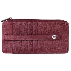 Porta tarjetas delgado Hudson Julia Buxton USA en cuero suave tipo mantequilla natural, con una tira a presión que asegura 6 ranuras para tarjetas de crédito, amplio bolsillo exterior y ventana para identificación, además de cierre superior completo para mayor seguridad.