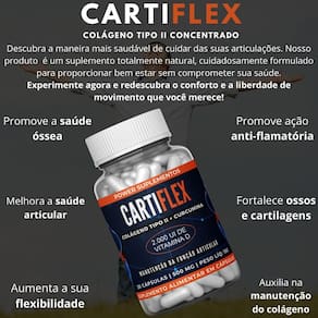 Cartiflex - 30 cápsulas Sabor: neutro Este anuncio contém 1 cartiflex colágeno tipo ii concentrado com 30 cápsulas para uso diário. Este suplemento alimentar é uma poderosa fórmula composta por colágeno tipo 2 não desnaturado, projetado para adultos acima de 19 anos que buscam melhorar sua saúde geral. O colágeno tipo 2 desempenha um papel crucial no fortalecimento do sistema imunológico, especialmente na prevenção e controle de situações que afetam as articulações, cartilagens, tendões e ligamentos. Sua ação promove a saúde articular, mas também auxilia as articulações e juntas que estão associadas a essas condições, proporcionando uma maior qualidade de vida para idosos, obesos, pacientes lesionados e entusiastas do exercício físico. Além disso, o colágeno é essencial para a vitalidade do cabelo, pele e unhas, ajudando a manter sua integridade e elasticidade ao longo do tempo. Ao tomar cartiflex colágeno tipo 2 regularmente, você estará fortalecendo suas articulações, prevenindo o desgaste, mantendo a integridade dos músculos e protegendo ligamentos e tendões. Cada dose deste suplemento fornece 40mg de colágeno tipo ii, contribuindo significativamente para a sua saúde e bem-estar. Estamos aqui para esclarecer qualquer dúvida que você possa ter. Sinta-se à vontade para entrar em contato conosco através do campo de perguntas. Aguardamos o seu pedido do vendedor: 07 dias. Este produto é isento de registro conforme rdc 240/2018. Lembre-se, este produto é um suplemento dietético, não é um . Suplementa ante dietas insuficientes. Consulte seu médico e / ou farmacêutico. Aviso legal Idade mínima recomendada: 19 anos. Consumir junto com alimentos para facilitar sua assimilação. Este produto é um suplemento dietético, não um . Suplementa dietas insuficientes. Consulte o seu médico e/ou farmacêutico. Este anuncio contém 1 cartiflex colágeno tipo ii concentrado com 30 cápsulas para uso diário. Este suplemento alimentar é uma poderosa fórmula composta por colágeno tipo 2 não desnaturado, projetado para adultos acima de 19 anos que buscam melhorar sua saúde geral. O colágeno tipo 2 desempenha um papel crucial no fortalecimento do sistema imunológico, especialmente na prevenção e controle de situações que afetam as articulações, cartilagens, tendões e ligamentos. Sua ação promove a saúde articular, mas também auxilia as articulações e juntas que estão associadas a essas condições, proporcionando uma maior qualidade de vida para idosos, obesos, pacientes lesionados e entusiastas do exercício físico. Além disso, o colágeno é essencial para a vitalidade do cabelo, pele e unhas, ajudando a manter sua integridade e elasticidade ao longo do tempo. Ao tomar cartiflex colágeno tipo 2 regularmente, você estará fortalecendo suas articulações, prevenindo o desgaste, mantendo a integridade dos músculos e protegendo ligamentos e tendões. Cada dose deste suplemento fornece 40mg de colágeno tipo ii, contribuindo significativamente para a sua saúde e bem-estar. Estamos aqui para esclarecer qualquer dúvida que você possa ter. Sinta-se à vontade para entrar em contato conosco através do campo de perguntas. Aguardamos o seu pedido do vendedor: 07 dias. Este produto é isento de registro conforme rdc 240/2018. Lembre-se, este produto é um suplemento dietético, não é um . Suplementa ante dietas insuficientes. Consulte seu médico e / ou farmacêutico. Aviso legal Idade mínima recomendada: 19 anos. Consumir junto com alimentos para facilitar sua assimilação. Este produto é um suplemento dietético, não um . Suplementa dietas insuficientes. Consulte o seu médico e/ou farmacêutico.